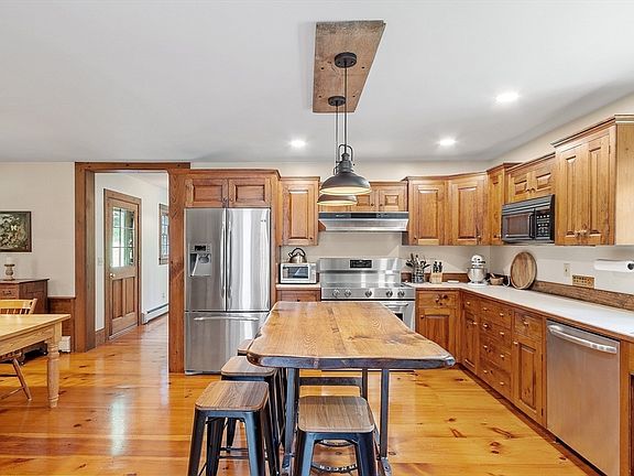 Set back from the road on nearly 4 acres, this charming & private custom builder’s home offers wide pine floors flowing through the main living area, where an open kitchen with stainless appliances connects to a cozy living room. The attached dining area is anchored by a stunning floor-to-ceiling brick hearth with wood burning stove. Step out to the screened porch & adjacent deck, an ideal space for relaxing or entertaining. The oversized 19x23 great room features oak floors & provides access to an unfinished second floor bonus room, perfect for an office or playroom. Upstairs, you’ll find three bedrooms & two full baths, including a spacious primary suite with a walk-in closet, with access to walk up attic for even more storage. The expansive basement, currently used as a woodshop, has potential for additional finished space & includes direct access to a two-car garage. This home offers flexibility with endless posibilities! Make this beautiful home your personal retreat!