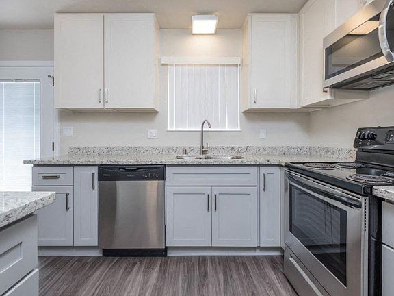 Our apartments feature interior amenities such as air conditioning and heat, spacious walk-in closets, fenced patios, washer / dryers within, dining rooms for additional entertainment, and more! Our community offers a sparkling pool, five onsite laundry facilities, covered parking, and 24-hour emergency maintenance.