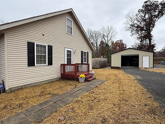 Perfect Getaway at Lake Barkley just a few miles from 5 boat ramps and close to Buzzard Rock and HuB’s Marina. It offers 2 bedrooms and 2 bathrooms approximately 1092 sq feet built in 2008 on 1.17 acres. It could be used as an AirBNB or a VRBO if you wanted to. The home was painted last year and new flooring upstairs last year. This home is ready to move in. Just added within the year is a brand new 24x30 detached garage for all of your lake toys and a driveway to access it, a 20x12 wood working shop, a dog kennel on a treated lumber deck. Just recently seeded the yard so it will look great by spring. There is a 12x13 storage building and a 21x18 detached garage that has concrete and electric and new shelving that was recently added. You can sit on the covered deck and watch for the deer to come into the back yard. There is a tomato patch right by the side deck. There is a wall propane heater for backup and the stove runs off propane. Oak cabinets in the kitchen. Nice hardwood flooring in the living room. Huge walk-in closet in the master and tons of storage space in the upstairs bedroom. This home is a must see, call today to schedule your private viewing.