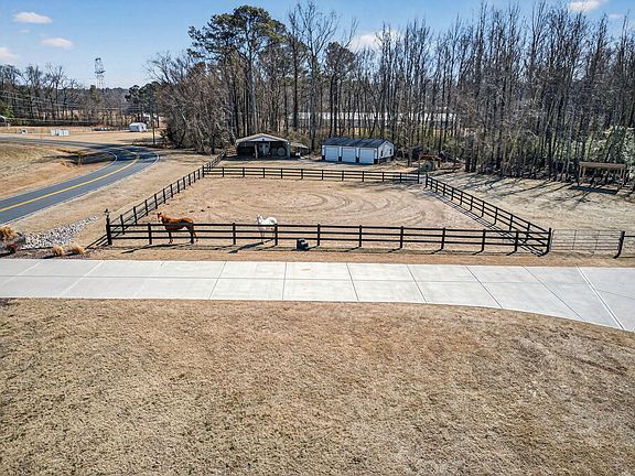 There are properties with acreage and then there are properties designed for living with horses. From the moment you arrive, the up-lit 3-board fencing and open pasture views set the tone....private, welcoming, and undeniably equestrian. Amenities include 30' x 30' barn with oversized stall, hay and trailer storage plus side overhang, two established pastures, three horse shelters, two covered hay feeders, powered 20' x 10' feed & tack shed, 3-car detached equipment building and covered parking pavilion. Ride at home in your 93' x 83' grass arena or head out to the on-site trails. If expansion is in your plans, the outbuildings offer easy conversion for additional stalls. Inside, the open floor plan flows naturally into a true gourmet kitchen featuring quartz countertops, stainless appliances, gas cooktop, tile backsplash, oversized island w/ farm sink, and separate scullery/prep kitchen. The soaring two-story family room centers around a stone fireplace with reclaimed wood mantel and built-ins, adding warmth without losing scale. The primary suite was positioned intentionally featuring wide windows framing the pasture so mornings start with natural light and grazing horses. The spa-style bath delivers dual vanities, dual closets, separate water closets, soaking tub, and walk-in shower designed for comfort after a long day outdoors. Large laundry room with custom cabinetry, mud room, front living/sitting room & half bath complete the first floor. Upstairs offers a loft and two bedrooms each with an ensuite. Outdoor living is just as compelling. 42' x 14' screened porch with fireplace, 47' x 10' deck, and stone patio with built-in fire pit overlook the fenced backyard and pasture beyond. Beautifully finished, thoughtfully planned, and fully functional for equestrian use. This is a ready-to-live, ready-to-ride estate built for buyers who want both a refined home and a practical horse setup on day one.