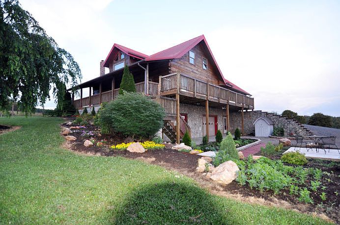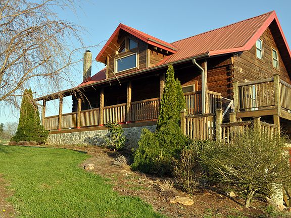 Priced below tax value. This property will be available to show on May 13. (Possibly sooner). Beautiful 4 bedroom, 4 bath, log home on two parcels totaling approximately 7 acres. Unpaved, but easily traveled state maintained road. No HOA fees. No restrictions and weekly garbage pickup is at the end of the driveway. Presently using Centurylink DSL internet. House can be seen from the Blue Ridge Parkway and has long range mountain views. It is a spacious home with lots of flat, usable acreage which is rare for the area. Land is partially wooded but most is open with fencing. Includes rhododendron farm with hundreds of beautiful shrubs ready to sell. Two workshops, one brand new and one a little older which is a 30X50 wired workshop with water. Master suite and laundry area both located on the main floor with 2 bedrooms upstairs as well as a large loft for optional 3rd with a bathroom upstairs. 1 bedroom in the lower section of the home with a bath.