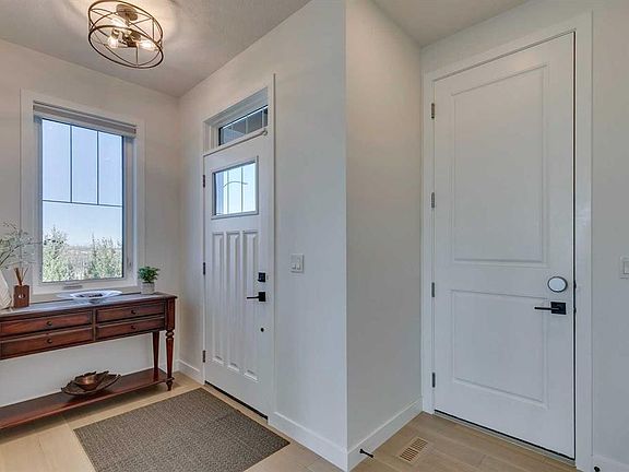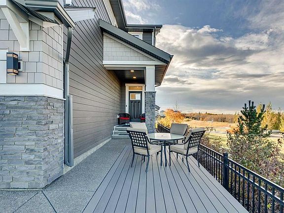 In like-new condition, this spectacular custom-built and extensively upgraded 2,430 sq. ft. 5-bedroom, four full-bath home will take your breath away. Located in Alpine Park, one of southwest Calgary's premier new home communities, this home backs west onto a community pond and a lush green space with sweeping views. Two-storey ceilings and windows with a full-height two-storey fireplace grace the sundrenched great room. Upgraded 8' island chef's kitchen features full-height shaker-style cabinets, soft-close doors and drawers, quartz countertops, Whirlpool stainless-steel appliances with a 6-burner commercial-quality gas stove, and an air fryer microwave. Tempered 10-mil glass railings lead to the upper level, featuring 3 large bedrooms, 2 full baths, and a large bonus/family room. The decadent primary bedroom has stunning mountain and pond views, a luxurious ensuite with a soaker tub, tile floors, quartz countertops with undermount sinks, and a king-size walk-in closet. The main floor offers a den/bedroom and is supported by a full bath to supply an "age in place" concept, with laundry on both the main floor and in the basement. Engineered hardwood floors, a substantial upgrade from vinyl plank, grace the main floor, the staircase to the upper bedrooms and the primary bedroom. The professionally developed basement features a family room/media space, a games area (billiards), a 5th bedroom, a full bath, and RI for a future bar/kitchen. Professional landscaping offers patios and expanded decks to maximize the pond and forest views. The garage has an epoxy floor, is drywalled to home-finishing standards, features custom shelving, and has a 12-ft. ceiling for loft storage or a car hoist. Exposed aggregate steps and patio, composite decking used on the front porch, A/C, triple pane windows, custom window coverings, side door for future suite (subject to civic approvals), full height tile in all baths, 9' ceilings through all levels, knock down stipple, upgraded lighting and plumbing, 8' interior doors, romantic electric fireplace in the primary bedroom, 200 amp service, RI for hot tub, water softener, high-end finishes, quality design throughout and views, views, and views!