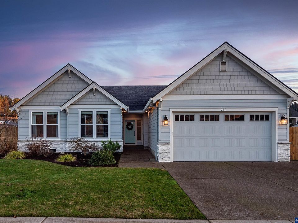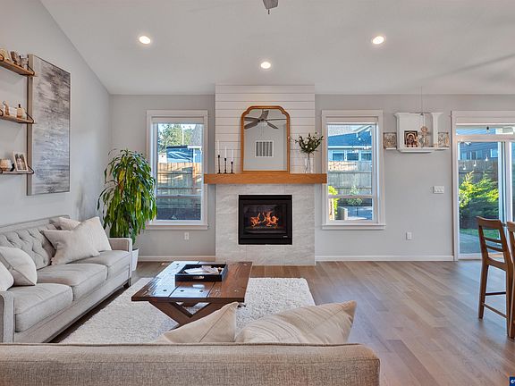 Discover modern living in Silverton, Oregon! This stunning 1-story home boasts an RV pad, heated garage, is generator ready and an open floor plan with a bright, airy design. The gourmet kitchen features stainless steel appliances, while the private primary suite includes a walk-in shower and closet. Relax in the backyard oasis with a sauna, plus solar panels included. Nestled in a sought-after neighborhood near top-rated schools, parks, and shopping, this home blends style, convenience, and sustainability.