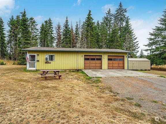Nice secluded 5.27 acre with a 3 bed, 2.25 bath, 2111sq ft rambler Large living and family rooms with fireplaces, dining room, spacious kitchen with dining area. Attached 2 car garage, heat pump, Large patio area. Detached garage with living quarters.