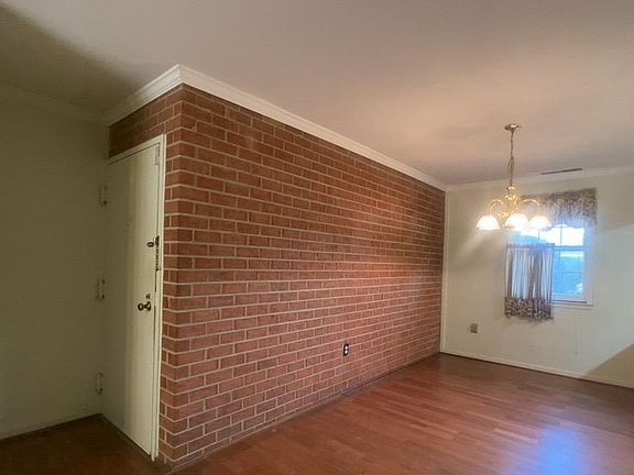 Brick wallBright natural lightingOversized countertopSeparate dining areaSpacious closet
