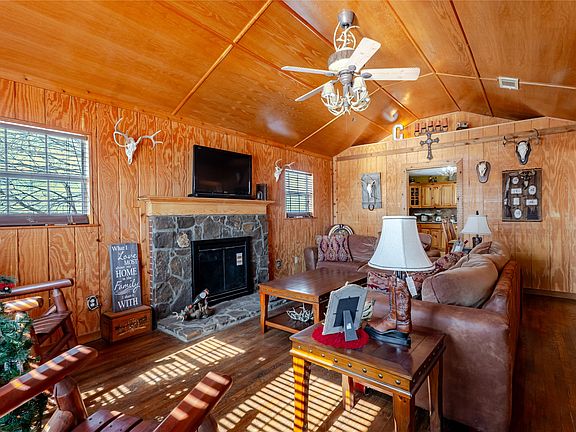 The property features a two-car garage or carport, along with an outdoor fireplace that doubles as a barbecue pit, ideal for entertaining family and friends. A barn with stables is already in place while it does need some TLC, its ready for your vision. There is a large concrete pad already poured, making it an excellent opportunity to build out a custom barn or horse setup.