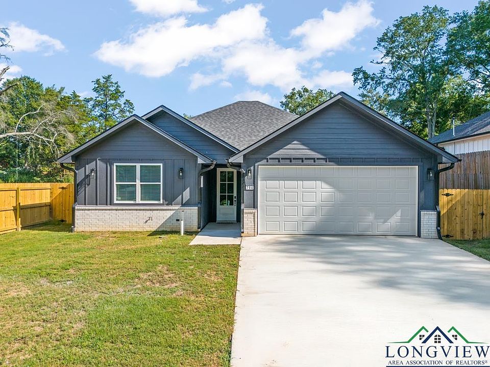 New 2025 Build in the Heart of Gilmer! This beautifully designed 4 bedroom, 3 bathroom home offers 1,845 sq ft of modern living space with a two-car garage and a fully fenced backyard. A contemporary fire pit sets the tone for outdoor gatherings, while the spacious yard is perfect for kids, pets, or quiet evenings at home. Inside, you’ll find modern paint tones, stylish tile, matching stainless steel appliances, and a walk-in shower in the master suite. Every detail was thoughtfully selected to combine comfort with lasting quality. Conveniently located near La Finca, one of Gilmer’s favorite restaurants, and just minutes from Highway 271 and downtown, this property offers both convenience and small-town East Texas charm. A home warranty and concessions are negotiable, giving buyers added peace of mind and flexibility. This new build delivers space, style, and location all in one. Schedule your showing today.