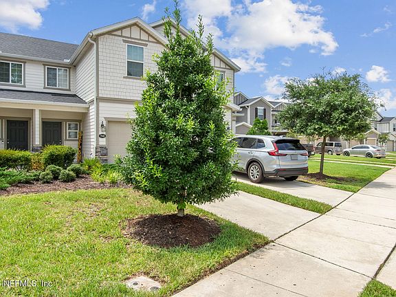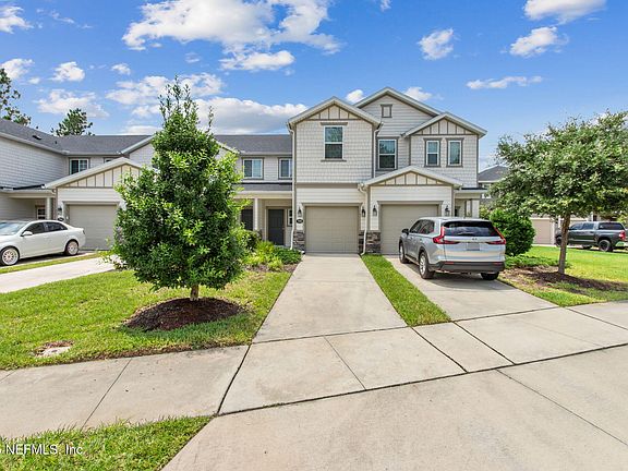 Meadows at Oakleaf: Welcome to this charming two-story townhome featuring a beautifully accented stacked stone exterior and peaceful pond views right in your backyard. This well-maintained residence offers 3 spacious bedrooms and 2.5 bathrooms with an open-concept layout perfect for comfortable living and entertaining. The modern kitchen is equipped with sleek cabinetry, a breakfast bar, and stainless steel appliances including a refrigerator, microwave, stove, and dishwasher.