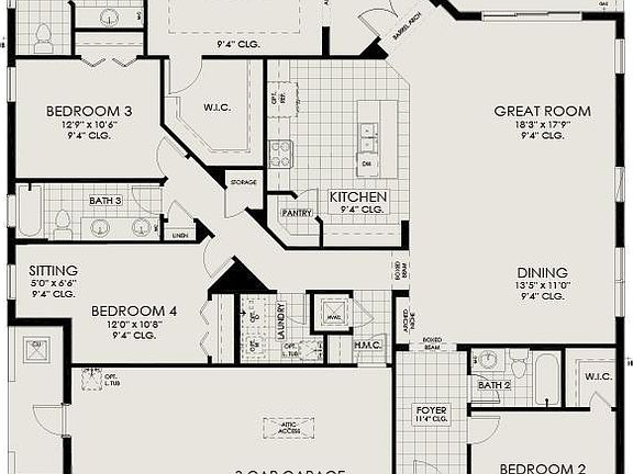 (2485 sq.. ft.) is a 1-story home with 4 bedrooms, 3 bathrooms, 3 car garage, great room, dining room, covered lanai and a master suite with sitting area. Options include an in-law suite and master bathroom with bathtub.