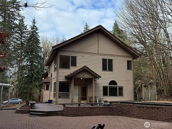 Spacious brick patioCozy wood-burning stoveLarge deckSerene exteriorOpen layoutBeautiful vaulted-ceiling second-story room