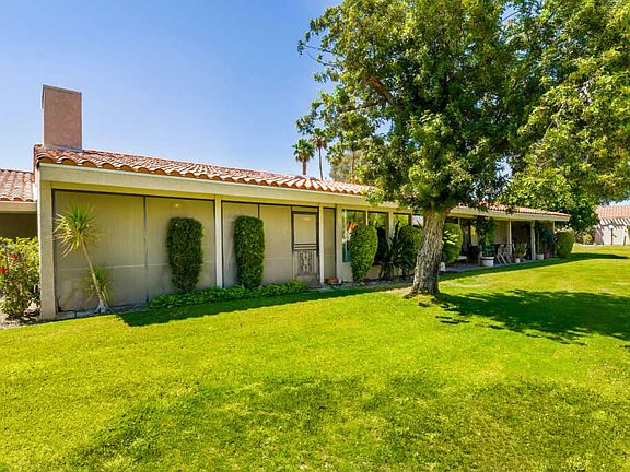 'Price reduction of $20,000'. This wonderful 2250 SF (EST.) condo has two Master Suites that are situated on opposite sides of home for extreme privacy. The unit is on a quiet cul-de-sac at Montego Bay which is located inside the gates of Bermuda Dunes CC. This floorpan features two bedrooms, two baths, a den/office and a detached garage with extra storage and a golf cart garage. The cheerful kitchen, with a real skylight, has a stool height breakfast bar and nearby is the dining area. The great room has vaulted ceilings and a natural gas fireplace. There is a large screened-in covered patio that is ideal for entertaining and open air dining or relaxation. A new roof was installed in 2020 and paid through your HOA. There is also a one year old HVAC unit in the home. The community has tennis courts and huge resort style pools with spas. Bermuda Dunes CC is a private Golf Club that offers full membership or a Club House Social membership. Some furnishings are available for purchase outside of escrow.