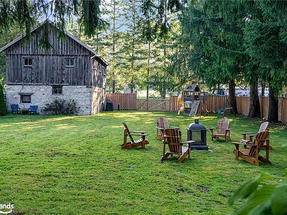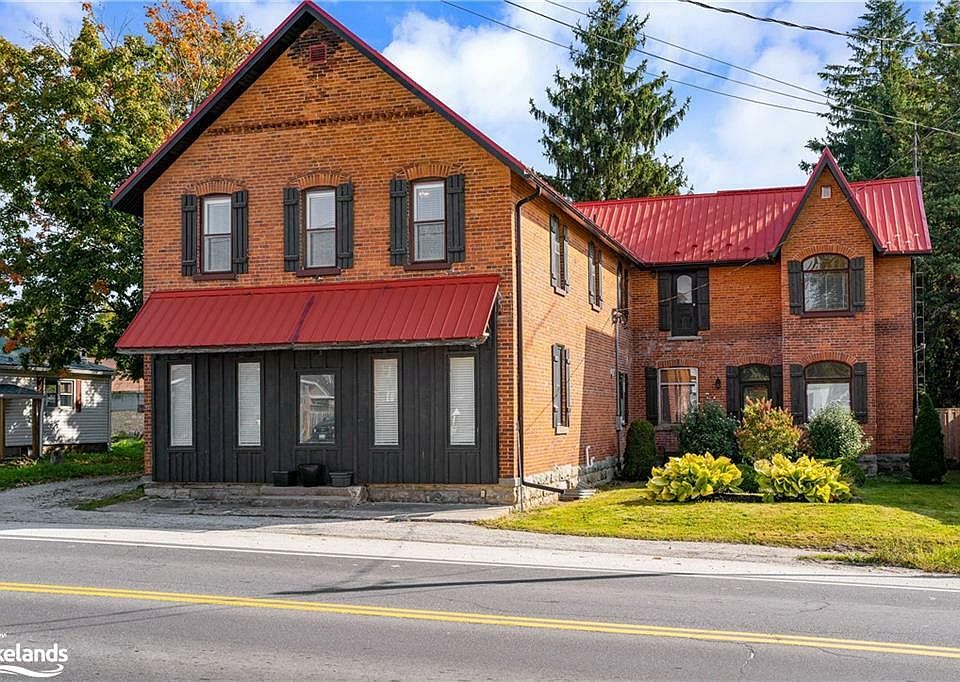 This home, which dates back to at least the 1840s, has been a landmark in Singhampton for more than 175 years. Once a simple red brick structure, it has been reimagined as a modern, sophisticated space that retains all of its historic character. Right around the corner from Devil's Glen Ski Club and directly across the street from the bustling Mylar & Loreta's restaurant, it offers not just a home, but a way of life in one of the area's most well known places. Step inside, and you'll notice how the 10-foot ceilings and exposed wood beams make everything feel bigger, brighter, and open. The floors—original solid hardwood—run through every room, grounding the home's modern upgrades with a sense of timelessness. The roof, a sturdy metal, is built to last generations, much like the home itself. The fully fenced in yard seems to stretch on forever, with a 1,500-square-foot barn that feels like a blank canvas. It could easily become an artist's studio, a workshop, a garage, or even be transformed into a separate living space if that's what you're after. There's even a back laneway connecting to the main street, making it ideal for whatever you envision this space becoming. With a second kitchen on the upper level, renovated by Collingwood's Alair Homes, the home could seamlessly be split into two distinct spaces, each one as large and welcoming as the other. Whether you want to live in it entirely or share it with extended family or tenants, the flexibility is there. This is a home that has aged gracefully, evolving with the times without losing its identity. Every inch of it feels personal, with new heat pumps that efficiently manage the climate year-round, and thoughtful renovations that stay true to its roots. This property has been a cherished home for the past 30 years, but with its C1 zoning, it offers a range of exciting opportunities for buyers. Whether you're looking to maintain it as a residence or explore commercial possibilities