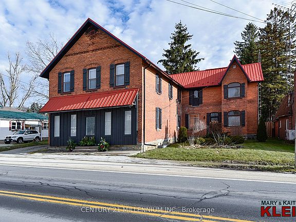 In the charming village of Singhampton, 1.5 hrs from TO, 20 mins to Collingwood, & Creemore, is this stately, red brick Century, full of character, rich in history dating back to the 1800s, on 0.31-acre lot w/ parking in the front plus rear access. Offering approx. 3600 sq.ft. of tastefully updated living space, this home has convenient C1 zoning w/ excellent street exposure and permits uses such as residential, personal service business, retail store, restaurant, vet clinic, & more! Last used as a recording studio w/ the family living quarters on the 2nd level, this layout suits a variety of creative endeavours ideal for multi-generation living. Original maple wood floors, pot ltg, a stained-glass focal point, 10 ft. ceilings w/ rustic wooden accent beams invite you in. The pine Kitchen has an abundance of workspace, quartz c-tops (24), travertine backsplash & SS appliances & is open to the large o/concept Living/Dining w/ gas FP & w-facing windows which flood this vast area w/ natural light. A large sliding door to a Family rm, has a sep entry to the front, excellent for in-home occupation. An office/bedrm has a closet & windows & a 3-pce bath completes this level. UPPER: Ren'd by Alair Homes in 2019, the 2nd level features refinished maple flring, a custom kitchen w/ a farmhouse sink, quartz & butcher block c-tops, tile backsplash, pot ltg, b-bar, has 4 large beds, 2 full baths, privacy & an open-concept layout + laundry. A door to the outside offers the pot. for a private deck or stairs down. Private backyard w/ deck (24). Approx. 34 ft. x 21 ft. barn/workshop w/ hydro offers 2 levels of workspace/storage. Endless possibilities & turn-key! Fabulous proximity to Devil's Glen Ski Club, Bruce Trail, Singhampton Caves, Hiking Trails, the Snowmobile Trail & Mylar & Loreta's rest. Front door (24), Generac & Panel (19), 2 Mitsubishi Zuba heat pumps (16), soffit, facia, eaves, attic insulation replaced (18), front door, on-demand HWH (24), Well pump (25)