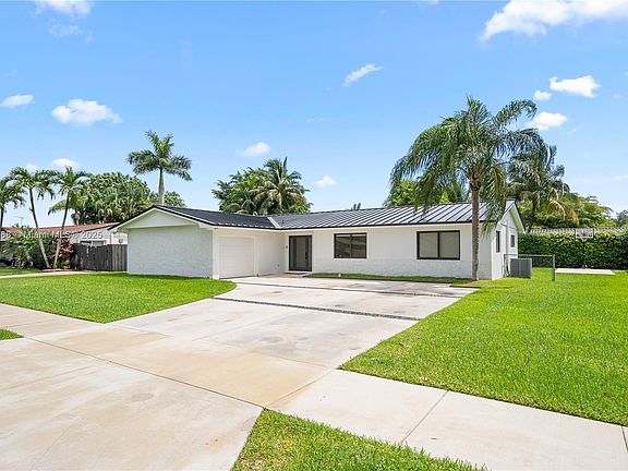 Discover this stunning modern home, updated with luxurious touches throughout. The property boasts 48x48 porcelain tile flooring, a fully remodeled kitchen featuring custom-made cabinets, matching porcelain countertops and backsplash, and newer stainless steel appliances. The bathrooms are elegantly upgraded with stylish tiles, exuding a fresh and contemporary vibe. Equipped with impact storm windows and a new hurricane-rated garage door, along with a newly installed METAL ROOF supported by complete plywood decking. Step into the spacious backyard, perfect for entertaining, complete with a new well water pump. The property also offers a newer driveway, accommodating multiple vehicles with ease! NO HOA! Ideally located near Kendall Lakes Park, top-rated schools, and popular restaurants!