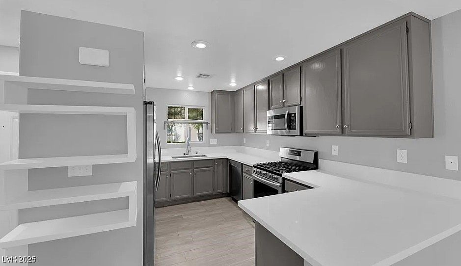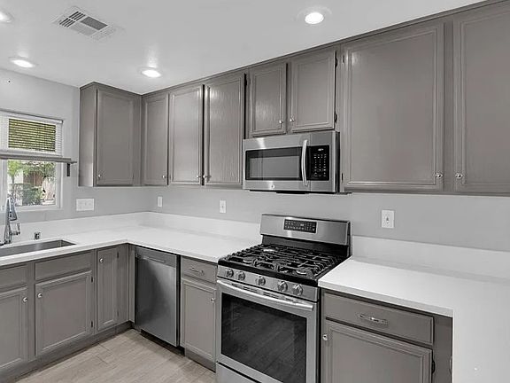 Fantastic Southwest location! This beautiful 3-bedroom, 3-bath home includes a rare full bedroom and bathroom on the main floor. The kitchen boasts modern quartz countertops, stainless steel appliances, and a convenient breakfast bar. The spacious primary suite features a walk-in closet for plenty of storage. Enjoy the ease of guest parking right next to the home great for entertaining! Located just minutes from the Las Vegas Strip, Allegiant Stadium, and major freeways. Close to shopping, dining, and the new Costco!