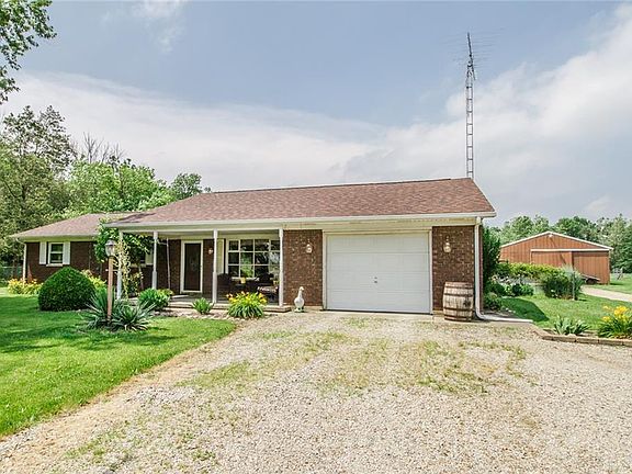 Highly desirable country 3 bed/2 full bath brick ranch, situated on almost 3 acres w/ a 50x30 pole barn, above-ground pool, & lots of space between neighbors! Perfect for 4-H projects or those who just need some room. Only 10 minutes from town, this home sits back off of the road & offers almost 1,400 sq ft. Two living spaces - front living room and an open family/dining/kitchen area w/ electric fireplace! Master bedroom w/ en suite bath featuring a walk-in shower. The entire back area of the property is fenced w/ access to the barn. The barn features concrete floors & offers 1 horse stall & insulated office space. The roof was replaced in 2011, bathrooms updated in 2016, laminate flooring installed in 2019, & the back patio poured in 2015. Private, quiet, and relaxing! Located in Franklin Monroe School District. This property is ready for the next owners, don't miss it.