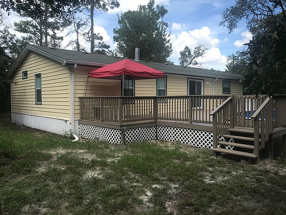 Back on the market!!! Stunning 4 Bedroom 2 Bath, 2006 Palm Harbor manufactured home with 2x6 exterior wall construction, cathedral ceilings and 2040 square feet of living space. A detached over sized 1 car garage with electric and a backyard oasis featuring a huge deck surrounding a new oval pool and filter overlooking a pond on a 2.4 acre lot with no HOA fees! For additional storage a 20 foot shipping container is also on the property. Newly remodeled home features new flooring, new stainless steel Whirlpool and Frigidaire appliances including 26 Cubic Foot refrigerator with water and ice, dishwasher, microwave, range hood and solid surface stove compliment a large spacious eat-in kitchen. Sliding glass doors off the kitchen take you to your pool and deck. Living room includes new wood flooring and a fireplace. Master bedroom includes Master Bath with dual sinks, garden tub, separate shower and huge walk-in closet. New carpet in all bedrooms and vertical blinds in all windows. Roof has been inspected and certified for insurance. Central AC has been serviced and is COOL. Lots of parking for boat or RV. There is an inside laundry room with sink and cabinets and a large front porch big enough for a swing. Also included is a huge 230SF bonus room!! A beautiful property located in the Highland Lakes subdivision of Weeki Wachee. Minutes to the Ocean, Schools, Shopping and Highway.