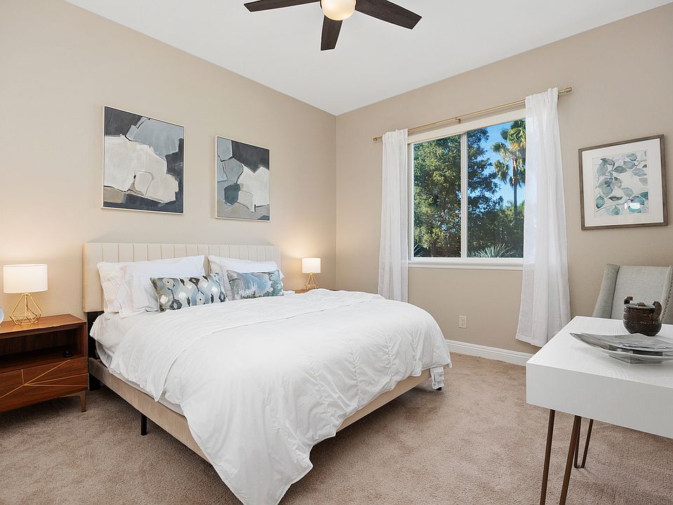 Private large furnished en-suite bedroom and private bathroom. Semi-private side entrance. King size bed, desk beautifully furnished. Quiet, very desirable neighborhood. Utilities included. No pets. Excellent credit and rental history please.