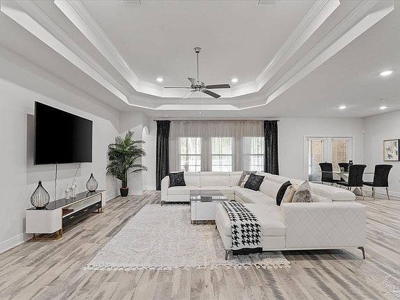 Exquisite 5 bedroom Home with gourmet kitchen & smart features in Gated Vintage Creek! Discover The McKenzie, a stunning 5-bedroom, 3-bathroom home that blends luxury, comfort, and modern convenience in the highly desirable Vintage Creek community! As you step inside, you're greeted by 9-ft. ceilings and elegant crown molding in the foyer, dining room, and primary suite. The open-concept layout flows seamlessly from the gourmet kitchen—a dream for any home chef—featuring granite countertops, stainless steel appliances, a drop-in gas cooktop, vent hood, built-in wall oven, and microwave. The large island overlooks the dining and living areas, making it perfect for entertaining. Retreat to the spacious primary suite, complete with a spa-like ensuite bath, double vanity, and expansive walk-in closet. The additional four bedrooms provide plenty of space for family, guests, or a home office. A dedicated family room or study complete with a large window offers the ideal work-from home setup or reading nook. Luxury details include engineered vinyl plank flooring in the main living areas, plush carpet in the bedrooms, and an expansive 11’ x 23’ covered patio that overlooks the private and fully fenced backyard—perfect for relaxing or hosting gatherings. This home is packed with modern features, including Smart Home Technology, an energy-efficient HVAC system, an all-electric 50-gallon water heater, fabric hurricane window protection, and a two-car garage with remotes for added security and convenience. Located just 2 miles from the Perdido River Boat Ramp and 3 miles from the Navy Federal Credit Union, this home offers easy access to luxurious community amenities like a swimming pool, pavilion, and picturesque oak trees—making Vintage Creek a premier place to call home. This incredible home won’t last long! Schedule your showing today!