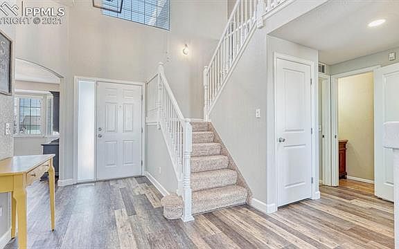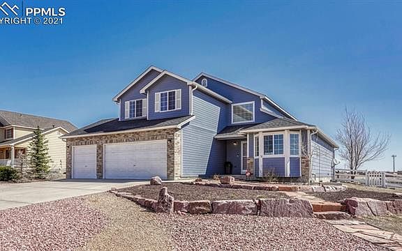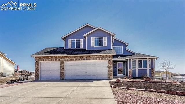 WELCOME HOME to luxury living in Falcon. Just minutes from shops, restaurants & Hwy 24. This spacious 5 bedroom 4 bath3 car garage home on over half an acre (.65 acre) looks even bigger w/ the open space behind. Room to park your RV, ATV, Boat & more! The rear yard is fenced but the property line extends ALL THE WAY to the walking trail! Send the kids off to Elem School just across the backyard & field - you can even blow them a kiss as they enter the school house! The yard is so easy to maintain w/drip system in the front & beautiful landscaping all the way around. Set up a couple chairs in the front to waive to neighbors as they walk past & sip your favorite beverage as the sunsets over Pikes Peak! More of a morning person, then enjoy your espresso on your multilevel deck while the sun rises in the east. Ready to enjoy the indoors? Welcome in to soaring ceilings, spacious rooms, beautiful wood floors & open floor plan. Cozy up to the gas fireplace in the great room while dinner is prepared in the chef's kitchen. A large island w/counter seating, all appliances stay including the gas stove & large refrigerator. For Chip & Joanna fans...this breakfast nook was created for you! Note the custom ship lap on the wall above the additional storage & counter space. The kitchen is complete w/custom lighting, granite counter tops & large pantry. Need a space for a more formal meal...it's a straight shot into the dinning room where you will WOW your guests w/Pikes Peak VIEWS - just imagine the sunsets! YES the Owners Retreat is just down the hall! A spacious master bedroom on the main level will accommodate any size bed & dressers too. Enter your 5 piece spa en suite through the gorgeous bar door. Custom & luxury finishes w/huge soaker tub, free standing shower, dual vanity, water closet & enormous walk in clothing closet. 3 more bedrooms, hall bath plus a loft complete the upstairs. The finished basement is the perfect guest retreat and extra living space. Please come view!