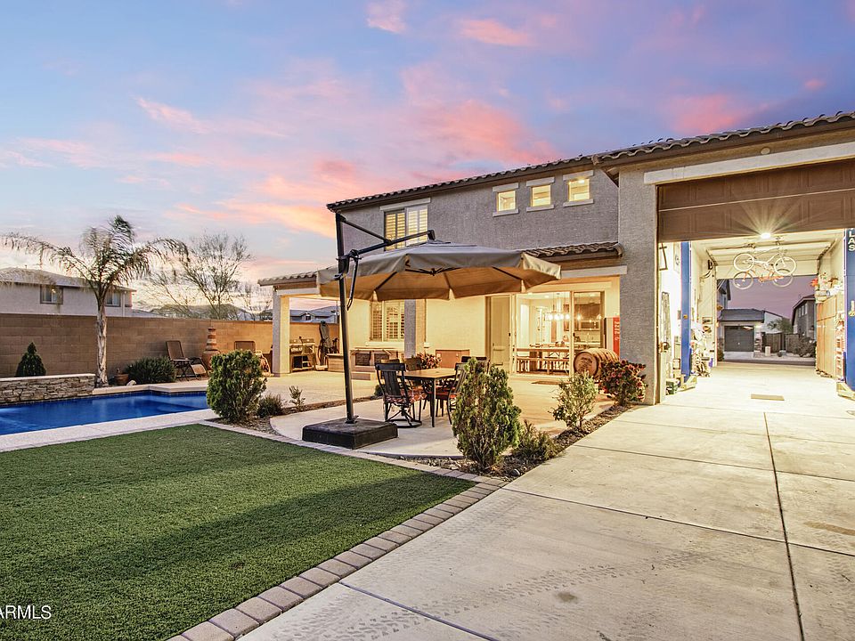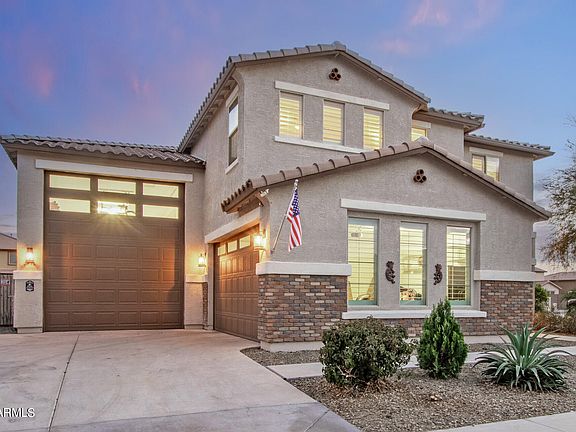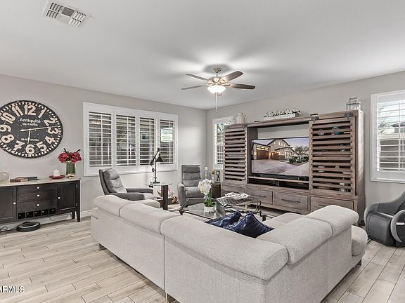 This home is the embodiment of the American dream. Now it's your chance have it all! RV garage plus 2 car or total up to 5 car garage. Plus, additional paved parking in the backyard, through the double sided RV garage. Professional car lift included with strong offer. The back yard is a spacious oasis of low maintenance landscaping, lush pool with waterfall and room to play basketball. Chef's kitchen with endless quartz counters, pantry, tons of cabinets & gas 5 burner cooktop. Premium wood-style plank floors. High-end plantation shutters on every window. Premium corner lot adds to the sense of privacy. This home provides a high quality of life most dream. 303 exchange going in soon! Are you VA qualified, ask about the assumable low interest mortgage!