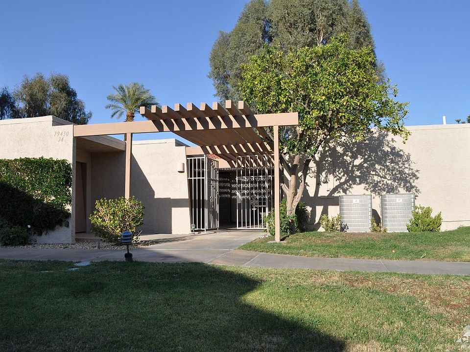 Sought after 3 bedroom, 3 bathroom, end unit steps to sparkling pool and two tennis courts.Once you walk through the front door you have vaulted ceilings and floor to ceiling walls of glass which bring in lots of light and views of the fairway and green l. Covered, extended rear patio is great for entertaining.