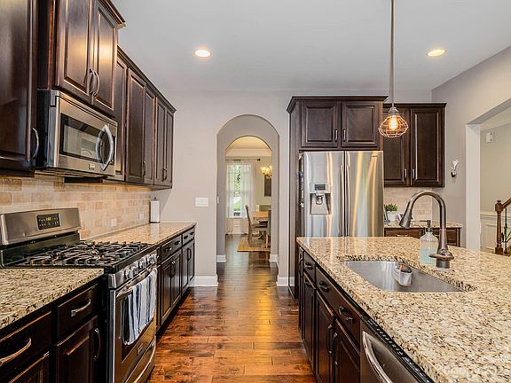 Beautiful corner lot home in sought-after Walnut Creek, with access to the Carolina Thread Trail and Twelve Mile Creek right outside your backyard! This 2016 Bonterra build features all of the modern necessities- open floorplan, inviting kitchen island, 42' cabinets, butler's pantry, fenced yard, something for everyone! The natural light coming into the breakfast area and the extended concrete patio are great ways to brighten your morning. The main level also has a robust guest suite with full bath. Upstairs, the Primary suite features an enviably large closet and bathroom and tray ceilings, while maintaining some privacy from the other three upstairs bedrooms, which also feature generous closets.