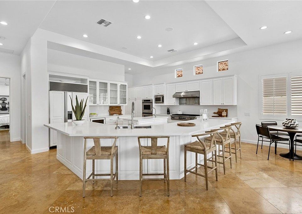 This completely outfitted, open-concept design exudes California chic throughout its 4-bedroom, 5-bathroom single-level floor plan. Comfort and unsurpassed style elevate the guest experience overlooking the second fairway on the nearly 15,000-square-foot private parcel in the guard-gated community of the Citrus Club. The desert lifestyle continues as you enter the fully equipped and remodeled chef’s kitchen featuring crisp white cabinetry, quartz counters, and a complete stainless-steel solution from Thermador and Viking. A center island and ample bar seating are ideal for the chef who enjoys socializing while preparing meals. Dining accommodations include a formal dining room, breakfast nook, patio seating, and a covered loggia with Infratech outdoor heating. This remarkable property boasts an extensive amenity list and numerous building system upgrades, including Samsung TVs, Roku video streaming, Sonos surround sound, iPad & Wi-Fi controls, whole-house audio, a pool, spa, billiards room with a wet bar, and fiber internet. Centrally located by the La Quinta Resort, PGA West, Polo Fields, Indian Wells Tennis Gardens, and only a short distance to El Paseo or downtown Palm Springs.
