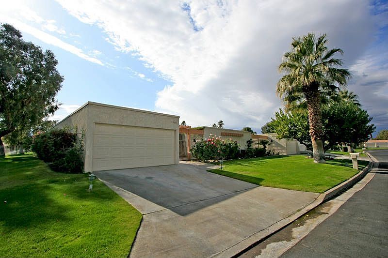 Only $110 a square foot!SOUTH Views, Furn, Remodeled, Reduced! Need space and a bright,open feeling?You won't feel claustrophobic in this expanded,3 bedroom, 3 bathroom END unit in prestigious Montego West-a gated enclave of condos in private Bermuda Dunes Country Club!Home has been thoughtfully updated wherein the gourmet kitchen is now open to the GREAT ROOM. Kitchen boasts slab granite counters, newer cabinets,ceiling raised and skylight added, stainless steel appliances including a Gaggenau cooktop (with 4 electric burners AND 2 gas burners). The great room is complete with a built-in entertainment center and a fireplace has been added for those cooler evenings. Gated, tiled front courtyard leads to double door entry. Attached 2-car garage PLUS 2 cart garage.Stunning views of the Southern Mountains and peaceful greenbelt offer great vistas plus privacy and a terrific grassy area at the rear of condo. Steps to pool/spa and 2 tennis courts. Imperial Irrigation for lower electric.