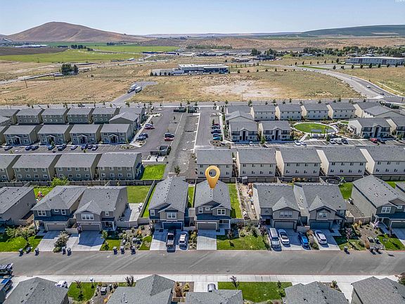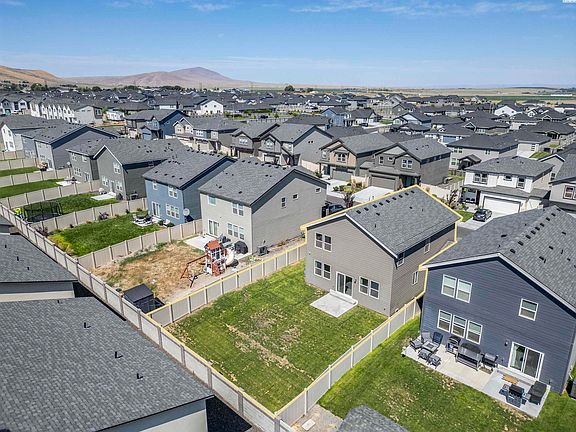 MLS# 286820 This home features a bright, open-concept layout with a spacious main level designed for entertaining and everyday living. The great room offers large windows overlooking the backyard, and the dining nook opens to a covered patio through sliding glass doors, perfect for enjoying outdoor living. The kitchen includes a large island with extra storage, white quartz countertops, a full tile backsplash, and a spacious pantry. A half bath and multiple storage options, including a closet under the stairs, add convenience. Durable laminate flooring runs throughout the main level for a clean, modern look. Upstairs offers 4 bedrooms, 2 full baths, and a laundry room with an additional storage closet. The primary suite is spacious andprivate, designed for relaxation with thoughtful details. Additional highlights include a garage with only a partial shared wall, creating extra storage/work space while maintaining privacy. The home sits on a spacious, fully fenced backyard, ideal for privacy, entertaining, and a true backyard retreat. The community also offers a neighborhood park within walking distance, plus quick freeway access and close proximity to the gorgeous Red Mountain area of West Richland.