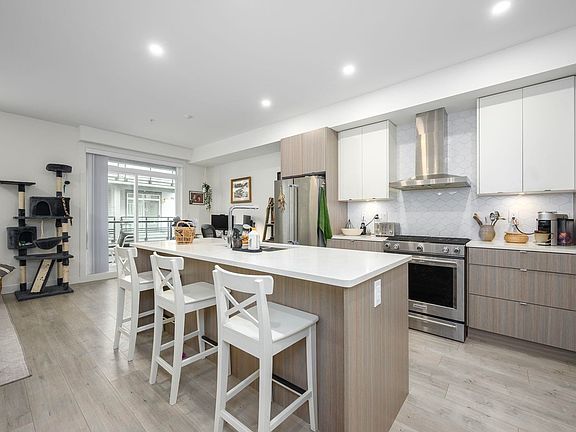 Welcome to this modern 3 bdrm, 4-level townhome in desirable Willoughby Heights! Open-concept living with a gourmet kitchen featuring quartz countertops, gas range, premium S/S appliances & a large island perfect for entertaining. Designer laminate floors throughout. Upstairs, the luxurious primary bdrm offers a private balcony, spa-like ensuite with dbl sinks & an oversized WIC. Enjoy a spacious 553 sq ft private rooftop patio with gas hookup. Double side-by-side garage with storage & EV charger. Complex includes gym, clubhouse & playground. Easy Hwy access & shopping nearby! Open House Sat Nov 8 2:00-3:30 2 pets allowed