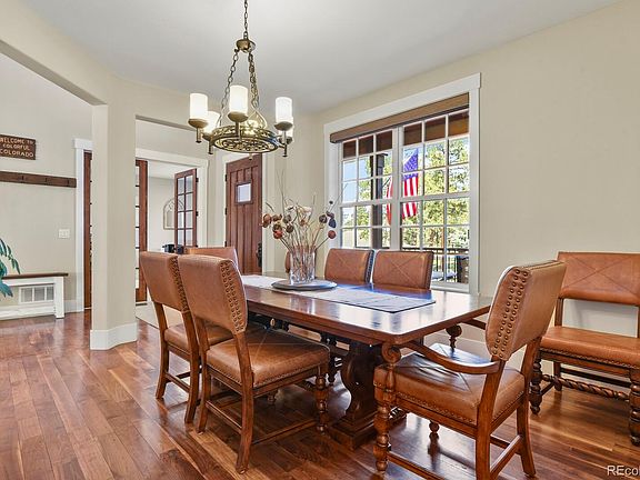 This mountain-inspired retreat in Hidden Forest features custom solid wood doors, walnut floors, and a floor-to-ceiling stone fireplace. The kitchen boasts a farmhouse sink, granite countertops, and a large walk-in pantry. The main level lives like a ranch or single story home and offers a primary suite with a 5-piece spa-like bath, a custom walk-in closet, an office, laundry, powder bath, and mudroom. Upstairs, a loft overlooks the main level, with two en-suite bedrooms. The finished basement includes 9-foot ceilings, a media/great room with a wet bar, a flex space, a fourth bedroom, and a fifth bathroom. An oversized 3-car garage with finished walls and coated flooring complements the home. The outdoor oasis features an outdoor kitchen on a stamped concrete patio, overlooking a private, oak brush and pine tree-filled half-acre lot, offering a true Colorado living experience. Abundant wildlife with deer, turkeys, and an occasional bear have been noticed in the neighborhood. Larkspur has several restaurants, a community park with concerts and events, and lots of trails to hike or bike. Enjoy the outdoors at home or in the surrounding community! Easy to commute to DTC or Colorado Springs, and Castle Rock is close by for the big box stores.