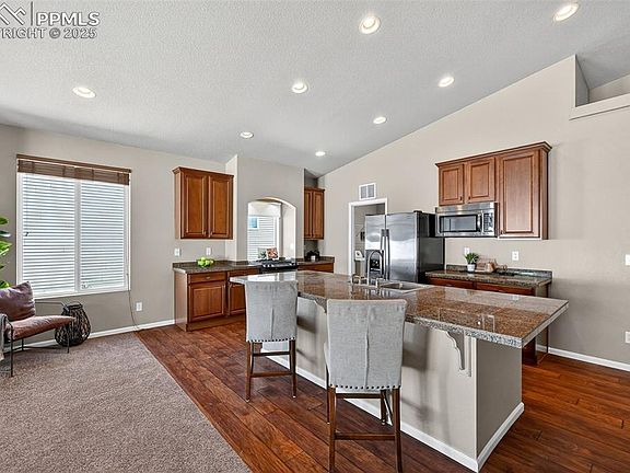 Welcome to this spacious 4-bedroom, 3-bath home offering desirable main-level living and over 3,100 sq ft of comfort and style. Featuring an open-concept floor plan, this home is perfect for both everyday living and entertaining. Upgrades include a new tile roof (2019), new carpet, and a new water heater (2023). The well-equipped kitchen comes with all appliances included, while the living areas provide an easy flow and plenty of natural light. Enjoy the convenience of abundant storage, an exterior shed, and a thoughtful layout designed with functionality in mind. Located just minutes from Fort Carson and I-25, this home offers quick access to shopping, dining, and commuting. Truly move-in ready—don’t miss your chance to call this beautiful Cumberland Green home your own!
