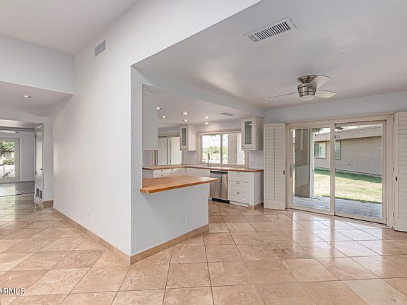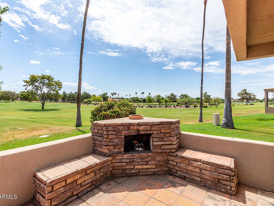 Situated on a premium golf course lot in a quiet cul-de-sac, this highly desirable home offers comfort, style, and serene views! Freshly painted interior boasts a blend of tile & wood-look flooring, plantation shutters, neutral tone, and recessed lighting that illuminates every corner. You'll surely LOVE the perfectly flowing open floor plan designed to maximize the space for airy and easy access to everyday living. The kitchen displays stainless steel appliances, butcher block counters, plenty of cabinetry, a breakfast bar, and a cozy breakfast nook with sliding glass doors leading to the back patio. Double doors open to the large main retreat offering direct outdoor access, an ensuite with dual sinks, and a mirrored door closet. Relaxing back patio has an exterior fireplace. Don't miss!