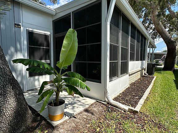 Southwind MHC is a PARADISE for the discerning Florida resident. Built in 1985, each home has its own grass lawn and the community boasts many shade trees and tropical landscaping as well as a lovely clubhouse and pool area located on a beautiful pond. Southwind MHC only houses multi-section manufactured homes so it It does not look like a "trailer park" and it was built well above sea level so there is no flooding during rainstorms or hurricanes. Be aware many neighboring communities in this highly sought after location have chronic street flooding, and are greatly affected during the storm and hurricane seasons. THIS CHARMNG AND SPACIOUS 1204 sq. ft. Florida getaway is filled with style & comfort. Located on a Private Perimeter lot, this home gives you the best of Florida with its inviting outside spaces to and its relaxing indoor ones. The huge Kitchen boasts wood Cabinets, Stainless-Steel Appliances including a vented Microwave above the Stove, and an Eat-In Breakfast nook in front of a beautiful Bay Window. This bright and lovely kitchen has TONS of storage!! The Open Living Room/Dining Room area is accentuated with beautiful Cathedral Ceilings, and lots of large Windows to bring in the Florida sunshine all around. There is a nice inside laundry room only steps away from two serene and spacious Bedrooms, and each having walk-in closets. The secluded Main Suite spans the entire rear of the home and has a large, attached bathroom with a Step-In Shower, Comfort Height Toilet lots of cabinet storage and a good size Linen Closet. The Guest Room is quite large and located a mere two steps from the Hall Bathroom with a tub/shower combo. There is a spacious INDOOR Laundry including Washer & Dryer. There is a lovely Lanai with New Windows and Wall Insulation installed in 2021, it is the perfect spot for warm chats with your family, visiting pals and your new Southwind friends. You will live in this space! This huge all-season room also has a large Breezeway leading to the back yard and the Huge Storage Shed! On the more practical side: Laminate flooring and drywall installed throughout the home. Central Air system installed in 2016, NEW ROOF in 2021, and Gutter Guards to make maintenance a breeze. New PVC Plumbing 2021, New Skirting around the home in 2021, New Vapor Barrier in 2021, Water Heater was installed in 2025 Filtered Water System 2025 Refrigerator new in 2024 All New Exterior Paint 2024. Plantation Blinds throughout This special Florida Getaway is calling you to the friendliest senior community in Palm Harbor! Southwind is charming, PET-FRIENDLY, 55+ community conveniently located in the heart of Beautiful Palm Harbor Florida, and close to the Historic Honeymoon Island State Park and the famous Pinellas Trail. Southwind has a community clubhouse that includes a banquet hall with full kitchen, heated swimming pool, billiards room, library, shuffleboard and horseshoe courts. The active resident run HOA sponsors a busy social calendar offering classes in aquatic-exercises / card & board games / dinners & dancing and much more. Seller's agent provides information to the best of their ability. When applying for home ownership in Southwind MHC, please verify current rates of lot rent, fees, and pass-on costs and read all rules, regulations, pet policies, etc., associated with the community, park, or home from the park management office. Lot Rent included lawn mowing & Trimming and twice weekly trash pickup. RV/Boat Storage is available for $100 per month.
