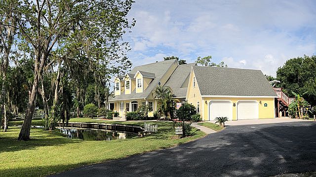 Pre-approved buyers dream! Custom Home. Private 2.18ac Country Cottage Estate with stocked fresh water horseshoe shaped pond, in quiet North Merritt Island. This home is five minutes from the Kennedy Space Center gate, 50 minutes to Disney World, and ten minutes to Port Canaveral cruise terminal. Two story split plan with three large bedrooms, 2.5 baths, oversized 2 car garage. Plus 1/1 separate full apartment over garage with private entrance and deck. When entering the main house, there is a bright two story foyer with a balcony above open to the upstairs bedrooms. There are french doors throughout providing lots of light. The main home's large open kitchen has a large dinette area surrounded by windows and overlooks the family room and woodburning fireplace. Enjoy open views and access to the outside in-ground pool area and beautiful mature trees among the grounds. There is a separate formal dining room and living room, each with bay windows plus an inside laundry room downstairs. Master bedroom has French doors leading to a new paver back porch, and the large master bath boasts a walk in shower and separate jetted tub with French doors to a covered front porch. Double pane windows throughout. Very well insulated. Entire property is fenced with white three rail pvc fencing. The 1 bedroom, 1 bath mother in law apartment with private deck located over the garage can be used as rental income or mother in law and has kitchen, tv room, bedroom, bathroom w/standup shower, central air condition and heating. Very peaceful property with quiet neighbors and a wonderful place to raise children. New roof, aluminum gutters and shingles in end of 2019. Exterior walls are 50 year Hardi Plank over concrete block. This is a solid, well built, custom home. Don't forget to see the 600 square foot unfinished attic space that can be finished as anything you like. It has electric, plumbing, and is partially insulated and ducted for a/c already. There is plenty of parking outside for boat or RV and an RV hookup exists. Make this your dream home in the country! No HOA. Low taxes, non flood zone. Interested parties must show proof of lender pre-approval. Homeowner occupied. Email rvc@bellsouth.net for more info.