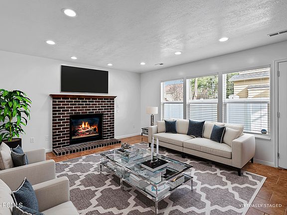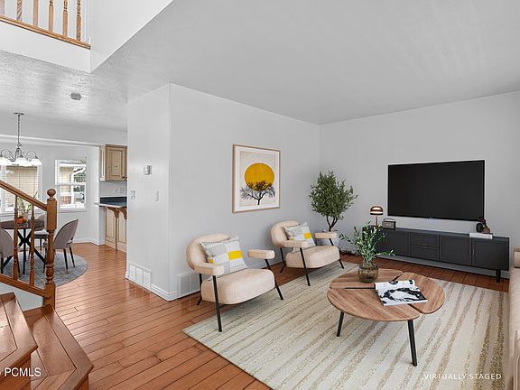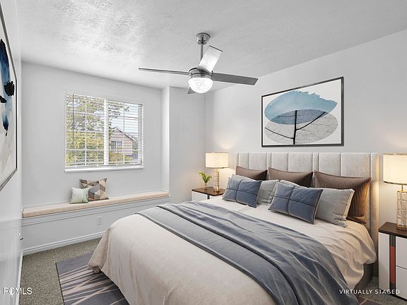 Coveted by bird-watchers, this updated five-bedroom Hearth & Hollow home is nestled beside the scenic Mehraban Wetland Park and offers easy access to the TRAX Kimballs Lane Station, providing exceptional convenience to both outdoor recreation and public transit on the border of Sandy, Utah. Situated on a desirable corner lot in the Sunset Ponds neighborhood and set back from any main roads, this home is a quiet and peaceful city retreat. Freshly updated with new paint, premium carpet, and contemporary plumbing fixtures throughout. Step into a bright, welcoming space where a stunning two-story entry floods the formal living room with natural light. The kitchen boasts a new refrigerator, rich hickory cabinets, sleek Corian countertops, and generous workspace perfect for both everyday cooking and entertaining. Just steps away, the adjoining dining area offers an inviting space for gatherings. In the main living area, a recently updated fireplace serves as a stylish focal point, blending warmth with modern charm. Upstairs, three spacious bedrooms accompany an elevated primary suite. The lower level includes an additional living area, bedroom, and bathroom perfect for guests, recreation, or work-from-home needs. Generous storage is available throughout, along with a two-car garage with MyQ Smart Home technology. A quintessential front porch offers serene views of mature landscaping. Just steps away, miles of paved walking paths wind through tall willows and mature trees, leading to two tranquil ponds frequented by resident waterfowl and equipped with docks, perfect for fishing or relaxing. The park also boasts a full Frisbee Golf Course, adding a fun, active element to this natural retreat. The large, fenced backyard provides privacy and space to relax or entertain. Sunset Ponds residents enjoy access to a private pool, event gazebo, and a sports court for basketball or pickleball. Enjoy a peaceful, nature-filled setting while remaining close to city conveniences. Home Equipped with Radon Mitigation System and Google Fiber. Home is virtually staged.