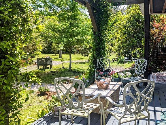 Spend quiet mornings on the sprawling covered back porch with a fully lit, cathedral ceiling, overlooking multiple varieties of fruit trees that Mr. Geiger planted fifty years ago. 1.06 acres surround this home that also offers a front deck, a patio garden, and privacy from all directions. The north side of the property shares its boundary with Rayonier's green space, providing seemingly endless acres of privacy. A quaint breezeway separates a cottage suite, (2014) complete with an additional bedroom, bath, living area, and kitchen, perfect for company or short/long term rentals. Seller has also installed a whole house generator. Both downtown Fernandina and the beach are less than two miles away, but you may be hard pressed to leave your piece of paradise. AS IS - at $250/sf PLUS an acre of land and an ADU, this is the deal of the island.