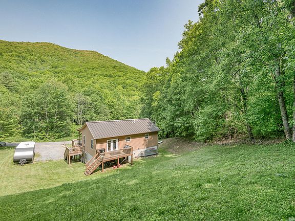 Beautiful Mountain Home located in Trade, TN with NO RESTRICTIONS!!! This wood sided home has been meticulously maintained and is what you have been looking for. This three bedroom, two bath home is situated on a nice lot that offers mountain views, a place for an RV with a 50 amp service, a garden area and the current owners have a chicken coup. Sit on the full length covered front porch and enjoy natures beauty while listening to the creek that is across the road. This home offers a master bedroom with a huge walk-in closet and master bath on the main floor. A deck is just off of the dining area and kitchen, which makes entertaining an ease. This home includes a SL16 standing seam metal roof that has no exposed fasteners and Kynar 5000 paint on the metal with a 50 year no fade guarantee. Other upgrades include a heat pump, an alarm system, a camera system, hardwood flooring, new carpet in the master bedroom and replacement windows. Come and enjoy the low cost of living in TN and avoid state income tax and high property taxes. This property is only minutes from Boone, NC and minutes from Mountain City, TN.