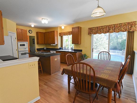This beautifully maintained 4 bedroom 2.5 bath home features a huge lighted deck and 33 ft. above ground pool that is perfect for parties, family gatherings--or enjoying a sunny summer day. The home presides over a meticulously landscaped .28 acre lot that backs to a private natural setting and is next to Ravinia Park (open space, walking trail, playground). Newer roof with architectural shingles and newer vinyl siding. First floor hardwood floors were recently refinished. Light & bright living room with vaulted ceiling. Family room with gas log fireplace. Generous master bedroom suite with vaulted ceiling, sitting area, and deluxe bath with separate shower & double vanities. Home features over 4200 sq. ft. finished living space including finished English basement including large rec. room, office, and other rooms that could be used for workshop or storage (2 basement workrooms have sinks). The perfect combination of beautiful home and outstanding location--see it today!