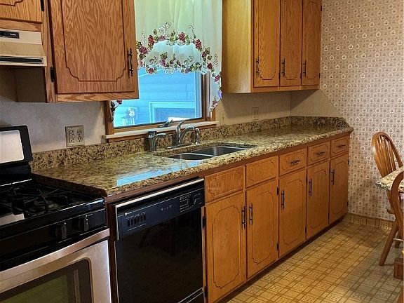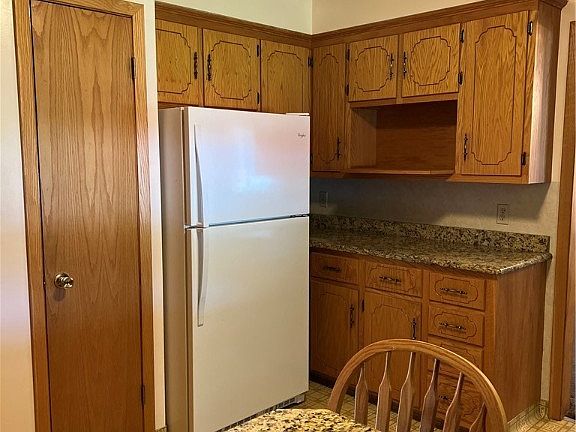 - Description: Built-in breakfast table. Kitchen appliances and 4 oak chairs included.,Flooring: Linoleum