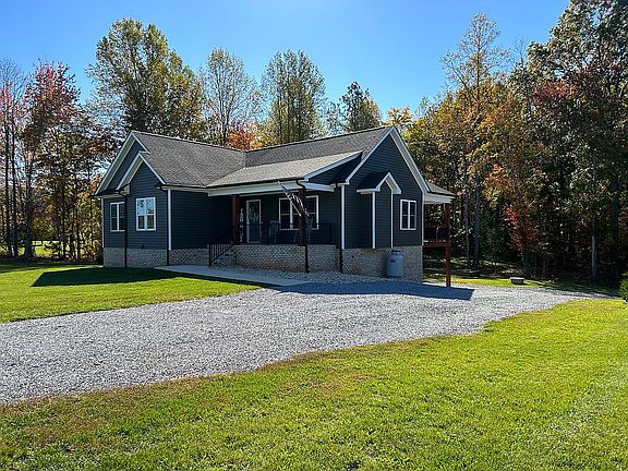 795 Sunset Ridge Dr- Built in 2021. A Beautiful craftsman style home, with covered front porch set on a spacious 1.53 acre wooded lot in the Sunset Ridge subdivision of Concord. Home is 1,560 sqft of living space with unfinished basement. Living area is well lit with large windows and a cozy fireplace. Large kitchen is complete with stainless steel appliances and beautiful marble countertops and matching island is perfect for cooking up family dinners and hosting guests, while a large covered back porch sits just off the spacious kitchen and dining area. Two spare bedrooms sit at the front of the house, with an adjacent full bathroom. Washer and dryer hook up on main level makes laundry tasks a breeze. Large master bedroom with tray ceiling and recessed lighting overlooks the beautiful, wooded backyard. Ensuite master bathroom is complete with double sinks, linen closet and large walk-in closet. Unfinished basement can be turned into man cave or spare rooms, rough-in for bathroom. Two sets of French doors lead to a large concrete patio that overlooks the custom firepit nestled in the wooded backyard. Both Shentel and Firefly internet are available and connected to the house.