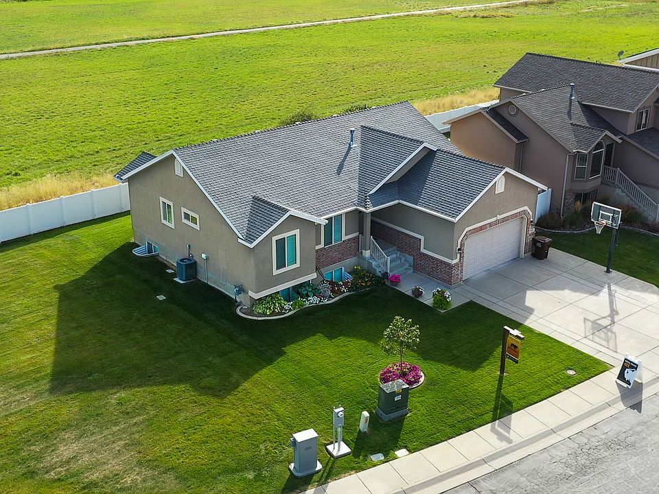 Welcome to this beautiful ranch-style rambler offering comfort, function, and incredible views in a desired Pleasant View neighborhood. The main level is designed for easy single-level living, featuring 3 bedrooms and 2 bathrooms, including the spacious primary suite. The kitchen, dining area, laundry room, and living spaces are all conveniently on the same floor. The upstairs was recently repainted in a fresh, neutral white, giving the home a bright and inviting feel. The newly finished basement adds an impressive amount of living space, complete with two large family rooms-one perfect for a game room and the other ideal for a home theater or entertainment space. You'll also find two additional bedrooms, one bathroom, and abundant storage downstairs, making this home as functional as it is beautiful. The property boasts an extra-tall two-car garage, providing the option for storage above, and the landscaping is pristine, showcasing curb appeal from every angle. Step into the yard and enjoy breathtaking views of Ben Lomond, with no rear neighbors for added privacy. Even better, the property adjoins 3/4 of an acre of HOA-maintained open space-lush green grass that you get to enjoy without the upkeep. The HOA fees covers your water, sewer, trash, and snow removal on the streets along with some access/maintenance to the common space which conveniently is right next door. Perfectly situated, this home offers central, easy access to everything you need, while still giving you the peace and quiet of a scenic neighborhood. This is one you won't want to miss-schedule your showing today!
