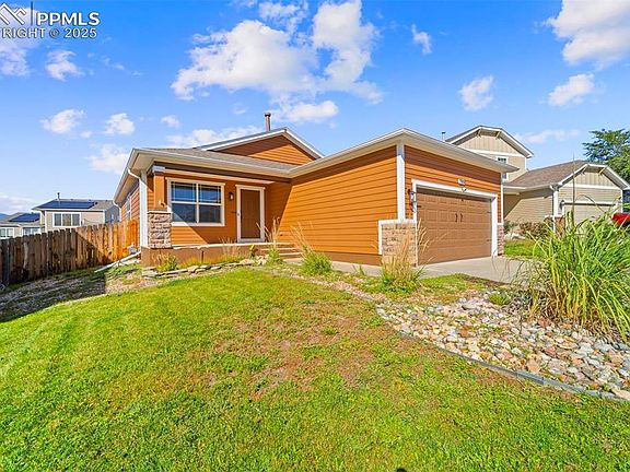 Main-level living at its finest! Tucked away in a quiet cul-de-sac, this charming home offers comfort, convenience, and proximity to countless amenities. A welcoming, covered front porch sets the tone as you step inside to an open, light-filled floor plan. The spacious kitchen provides ample cabinet storage and flows seamlessly into the dining area and family room. Cozy up around the gas fireplace or step directly outside to enjoy the fenced backyard—perfect for gatherings, pets, or play. The private master suite features its own bath and walk-in closet, offering a relaxing retreat. Fresh interior paint and brand-new carpet throughout make this home truly move-in ready. Located just minutes from Fort Carson (Gate 20), shops, restaurants, parks, and more, this home blends lifestyle and location.