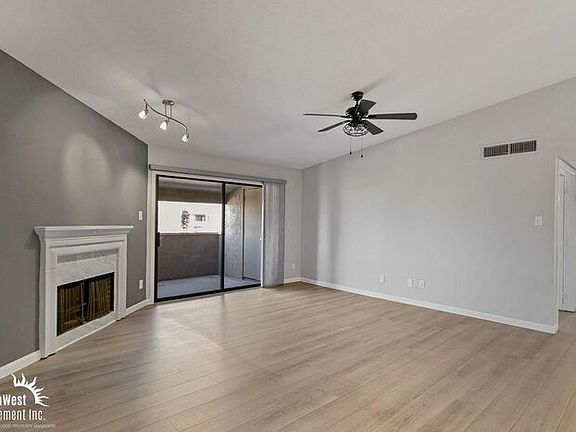 Beautiful 3Bdm 2Ba Home in Scottsdale! Step into the inviting living room, where sleek wood-style flooring, fresh neutral tones, and a cozy fireplace create the perfect balance of comfort and style. Large sliding glass doors fill the space with natural light and open to the outdoors, extending your living area. The culinary space showcases granite countertops, a stylish backsplash, stainless steel appliances, and ample cabinetry, blending functionality with modern design. Retreat to generously sized bedrooms designed with comfort and versatility in mind. Each offers warm flooring, soft neutral tones, and large windows that create a bright and welcoming atmosphere.Bathroom features a spa-inspired setting with dual vanities, abundant storage, an expansive mirror, and a walk-in shower enhanced by elegant finishes.Enjoy your own private outdoor escape on the covered balcony perfect for morning coffee, evening relaxation, or simply soaking in the serene surroundings.You'll have easy access to schools, restaurants, and shopping centers. Tenant pays all Utilities. This property allows self guided viewing without an appointment. Contact for details.