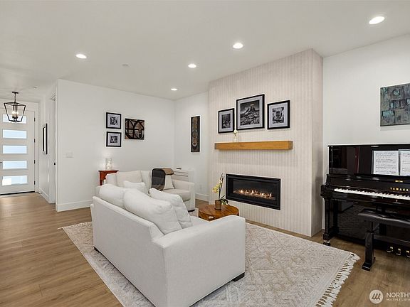 Outstanding, spacious and versatile modern home in a quiet private setting in vibrant Pleasant Beach/Lynwood Center. Constructed in 2023, with 3 bedrooms & 3 bathrooms. Beautiful, high quality finishes throughout. Main floor great room features a gourmet kitchen, dining area and living room with fireplace and huge windows opening onto the patio and the lush garden and woodland beyond. Flowing floorplan includes a main floor office & an upper den. The 3 ensuite bedrooms offer luxury and style. Main bedroom suite has views over the garden, walk in closet and a 6 piece spa bathroom. The 3rd bedroom suite (living area, balcony, bedroom, bath) has its own entrance off the courtyard for guests/au pair. 2 EV outlets in garage ready for set up.