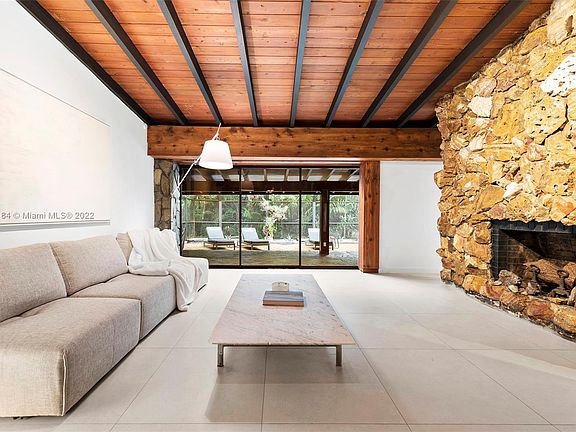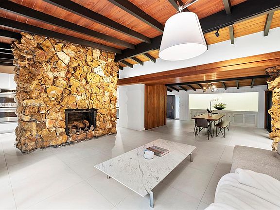 Stunning, ultra-private luxury home designed by renowned modernist architect Alfred Browning Parker. Completely renovated, the unique, nature-inspired home has 3 beds (converted from four) and 2 baths with new porcelain tile throughout. Spanning 3,181 square feet, the open concept living spaces display masterpiece craftsman touches including vaulted, beamed ceilings, original onyx rock fireplace, and exterior gray slate from Colorado. A brand-new kitchen features state-of-the-art appliances, wine fridge, white quartz counters with breakfast bar, and custom white cabinets. The spacious master suite has custom his/her closets with lighting and a designer open bathroom with dual sinks, Toto toilet and bidet, glass shower, and Clovis standalone soaking tub looking out to the garden.