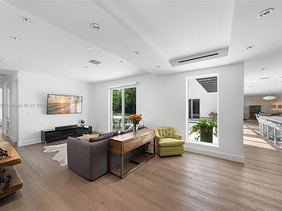 A true standout in High Pines - This renovated 5 Bed | 5 Bath residence blends modern design with effortless indoor-outdoor living. A sun-filled open layout features wide-plank oak floors, Italian cabinetry, and a sleek chef’s kitchen with premium stainless-steel appliances—all flowing to a lush, private backyard with mature fruit trees. The smart split plan offers three bedrooms on the main level and a serene upstairs primary suite with a spa-like bath, custom walk-in closet, and large private terrace. Additional den and studio/guest suite provide flexible living options. Impact windows, dual A/C zones, and refined finishes elevate comfort and peace of mind. Coveted location steps from top schools, shops, and dining—minutes to Coral Gables, Coconut Grove, and Brickell.