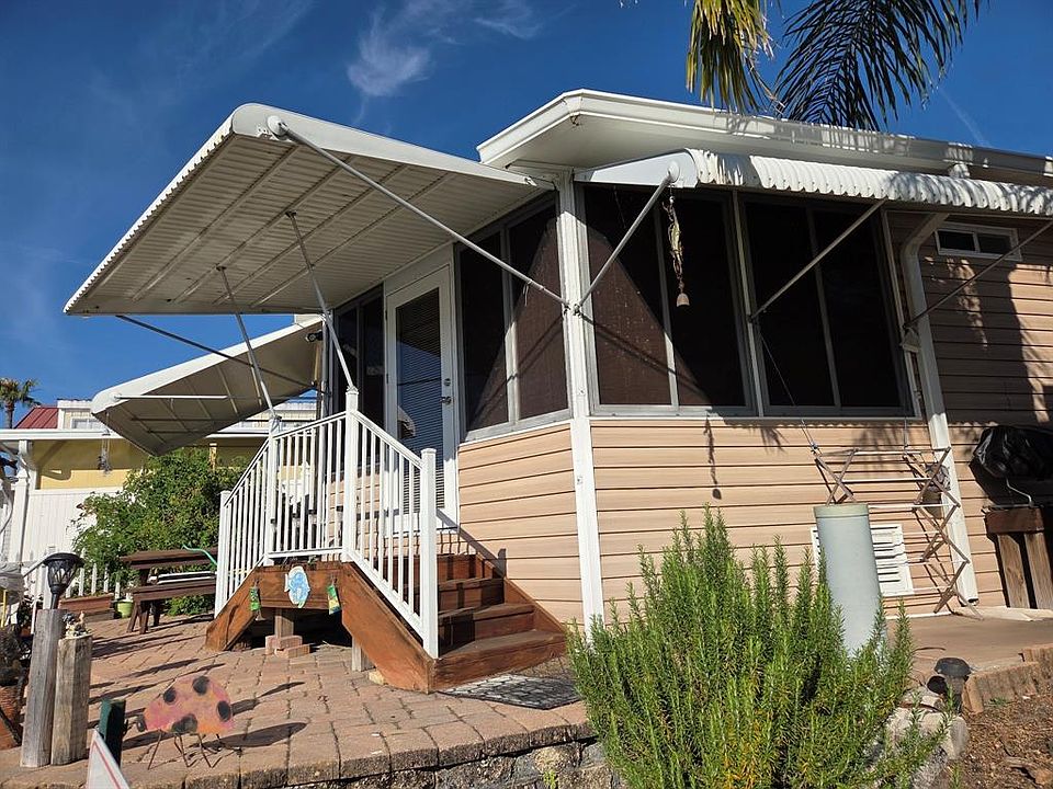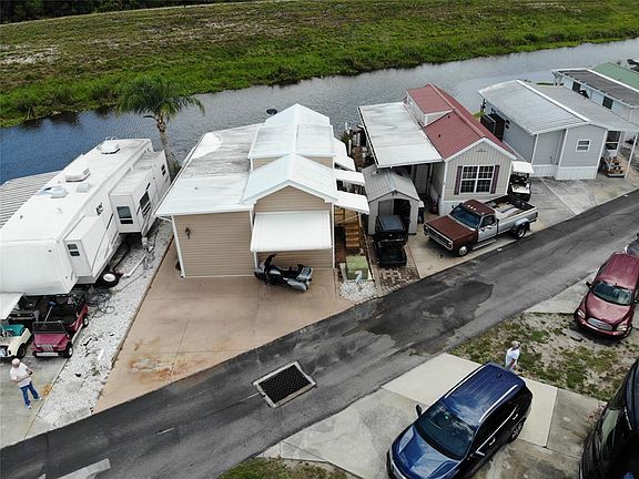 ~Big O RV Resort~ 55+ Community. 1 Bed with a loft- 1.5 Baths Park model located on the Rim Canal. Pavers with a nice patio on the water! Huge 10 X 20 Fl room/living room. New flooring throughout the home. Metal roof in 2018 with AC-Central heat & cool. Partially furnished. Nice outside Utility room/workshop. Bring the boat and go fishing or just a ride up the rim canal.