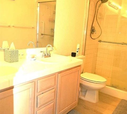 Well maintained, clean condo, ready for move in. 2 bedrooms 2 full attached baths. 1023 SqFt. Calm & quiet gated community, 3 swimming pools & hot tubs. Updated features from the door locks/ bell, dual pane windows, modern patio & screen door, 3 stage drinking water filtering system, plenty of recessed lighting in both living room & kitchen. Whirlpool washer, dryer & fridge included. New water heater installed July 2024. Floors are tile, carpet & wood. Central air/heat. Plenty of pantry cupboard space with custom made shelves. 4 Gas burner stove plus a microwave. Ground floor unit for easier access. 1 assigned carport plus plenty of guest parking available.